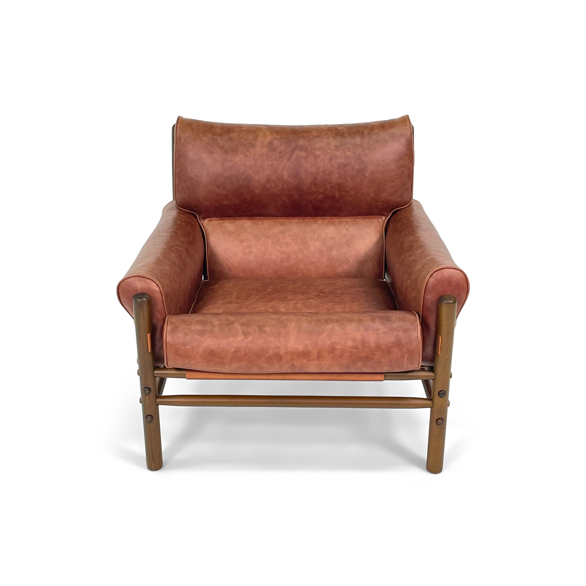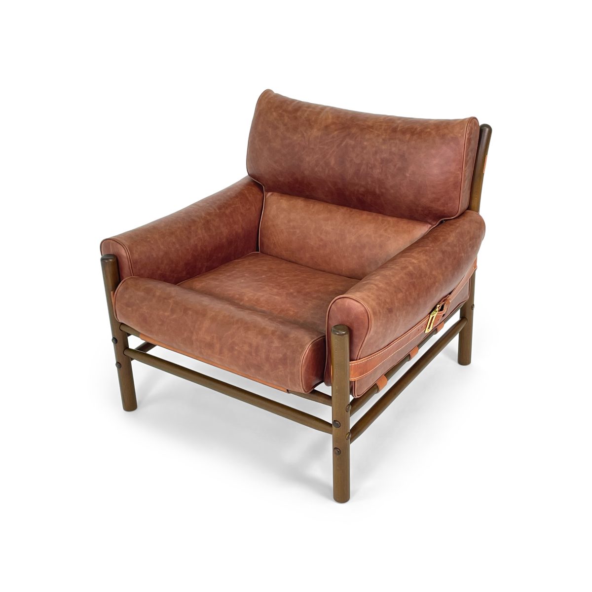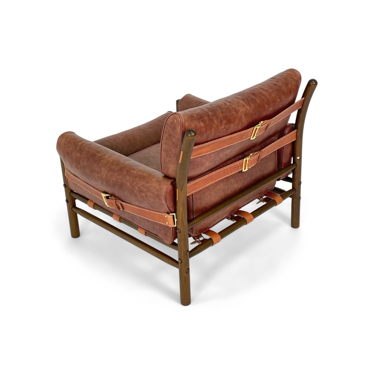 Kontiki was designed by Arne Norell in the 70’s and draws its inspiration from safari furniture. We manufacture Kontiki by hand in Sweden at our factory that Arne Norell founded in 1963. Wooden frame in selected solid beech with a variety of wood stain colors. Exclusive aniline leather from Tärnsjö Garveri or Camo, and others.